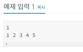 arr이라는 빈 배열에 입력을 모두 저장한다. 이때 arr은 [ '1', '1 2 3 4 5' ]의 형태로 저장된다.