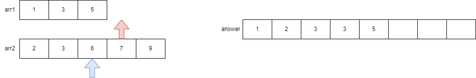 이렇게 answer에는 arr1과 arr2의 원소를 오름차순으로 합친 것이 저장된다.