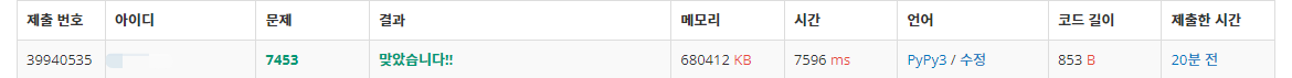 두 번째 풀이보다 메모리나 시간이나 모두 줄어든 것을 확인할 수 있다.