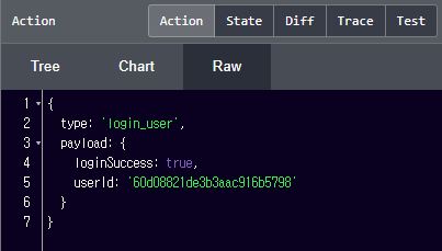 action에 type과 서버로부터 받은 응답이 제대로 저장된 것을 볼 수 있었다.